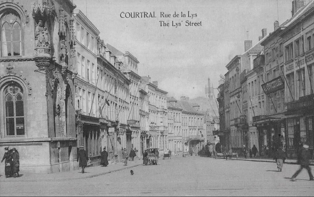Enerzijds heeft de naam relatie tot haar ligging aan de Leiestraat, de straat richting de oude Leie binnen de stadskern van Kortrijk.